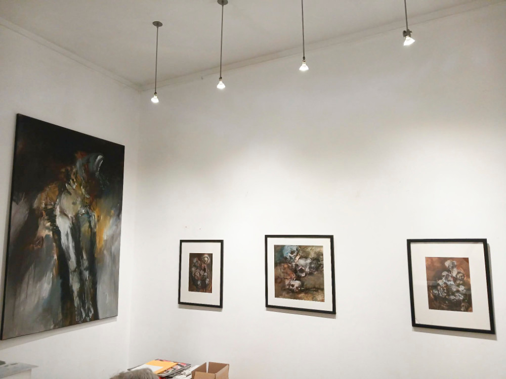 Entre ces êtres, c’est vraiment donner, même si dans de telles situations donner est difficile. Restent des appels ou des étreintes là où des restes de Pompéi demeure l’étoffe liturgique et la toile de toutes les lumières – parfois sobres – d’une telle artiste. Elle porte en elle un mystère et le bâtit. Chacun respire entre une sombre clarté et une faible lumière qui diffuse dans le corps et son esprit. Anna-Maria oblige à les regarder pour guérir de la souffrance d’un silence sans fond. Ces êtres sont vraiment Elle, sont vraiment nous, là, en de telles adorations dans la lumière les ténèbres.