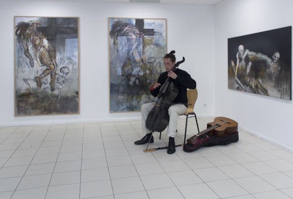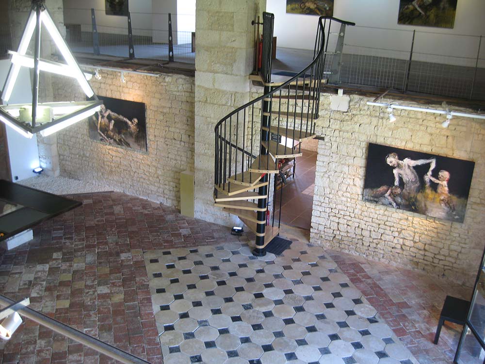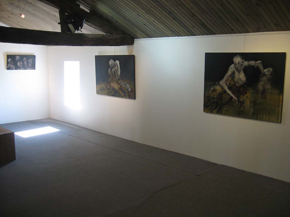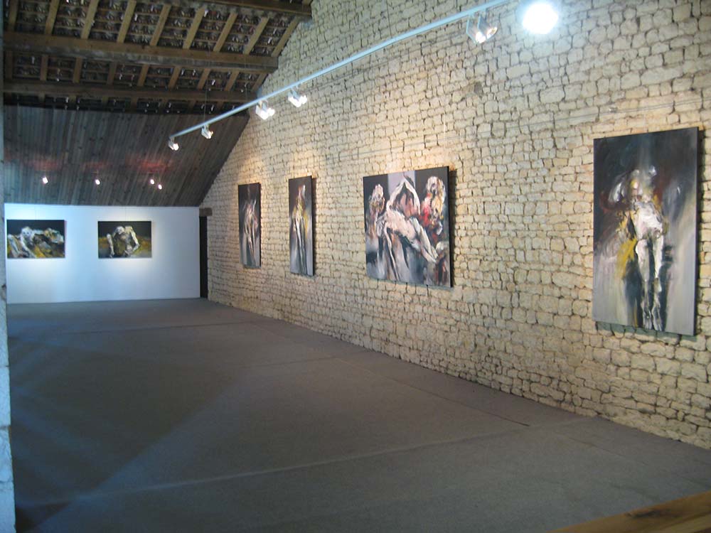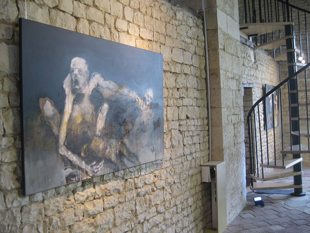 Exposition de Anne Marie Cutolo au clos des cimaises, espace dédié à l’art contemporain et plus spécialement à l’expressionnisme. Lieu unique d’exposition à 30 minutes de La Rochelle « Chez Cutolo, les corps nus sont écorchés, les chairs déchirées. La blessure est intime. La détresse à fleur de peau, physique et brutale. Au paroxysme de la douleur, le sang circule, les nerfs et les tissus palpitent. Obscénité des ventres qui livrent leurs entrailles, des membres mutilés. Abandon au tourment, violence du désespoir. Mais aussi tendresse et compassion. Vertige libérateur enfin, comme au bord d’un ravin qui s’ouvre à la vie secrète, bouillonnante et désordonnée.